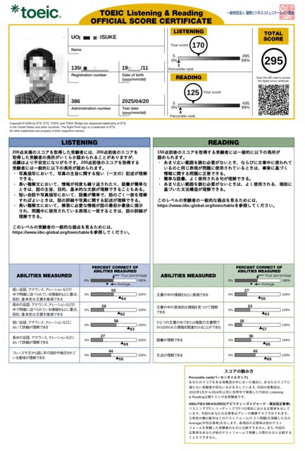 ① 2025年4月にTOEIC受験(目的:スタート時点の現在地を知る)