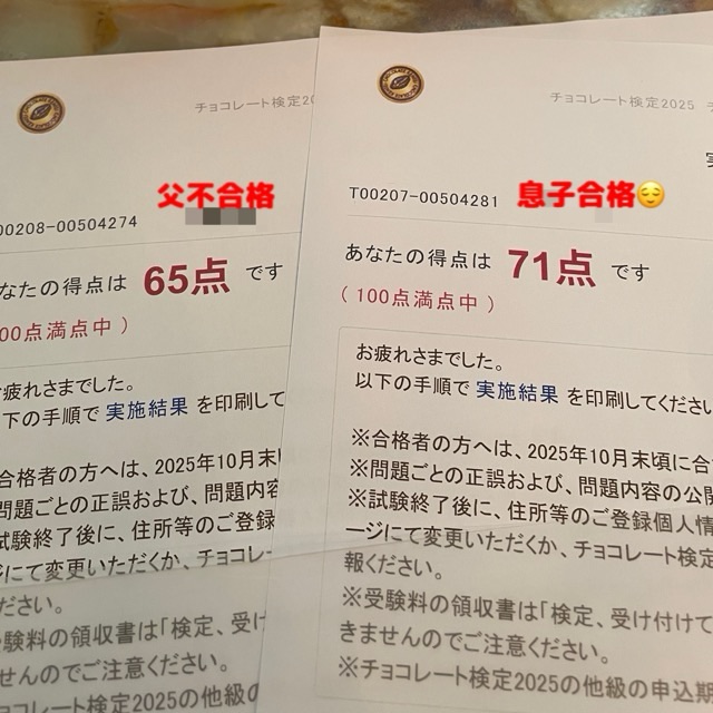チョコレート検定2025結果 父中級 息子初級